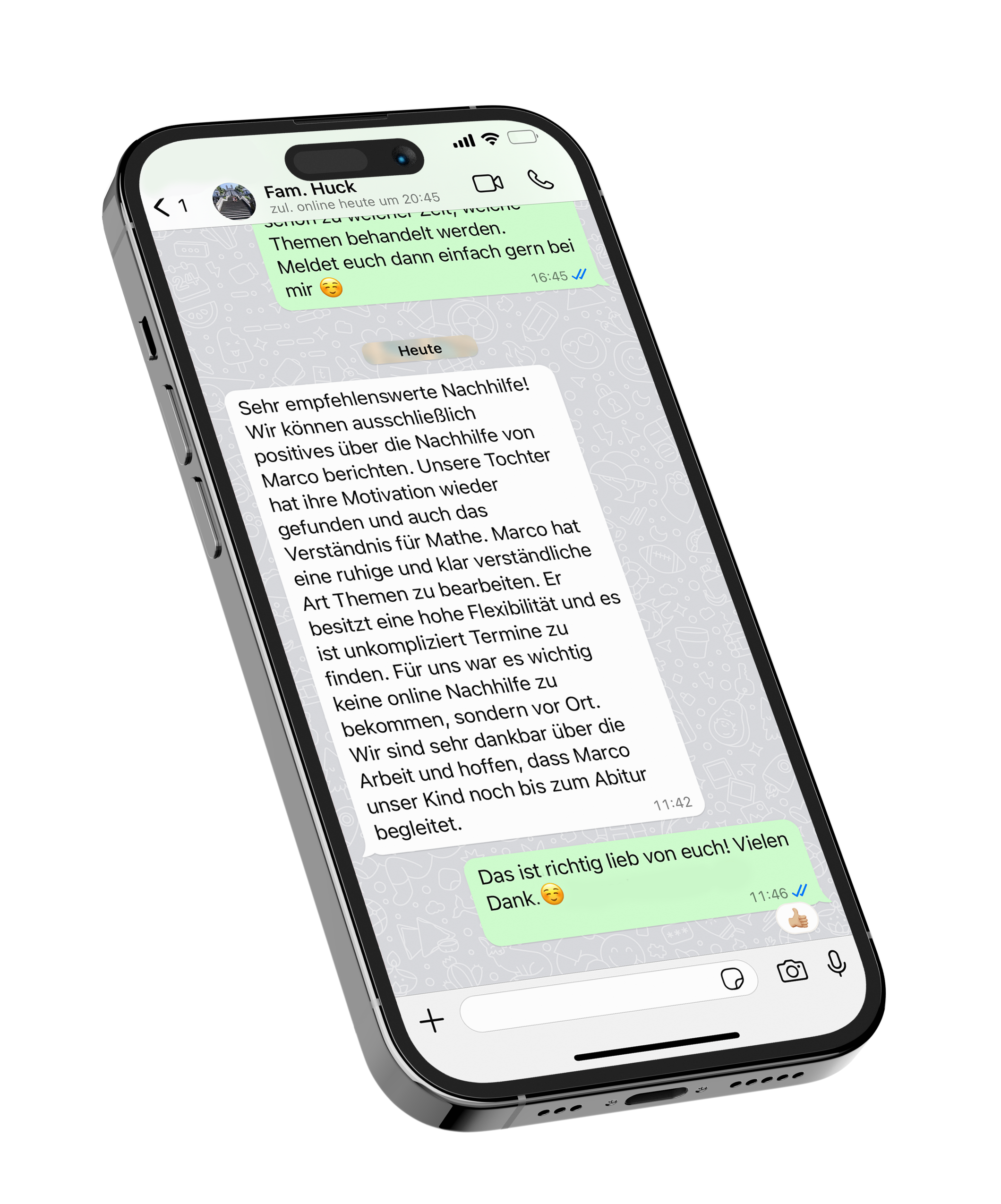 Wir waren sehr zufrieden mit den Nachhilfestunden, Phillip hat sich immer abgeholt gefühlt. Marco war immer zuverlässig und pünktlich. An dieser Stelle noch [...]